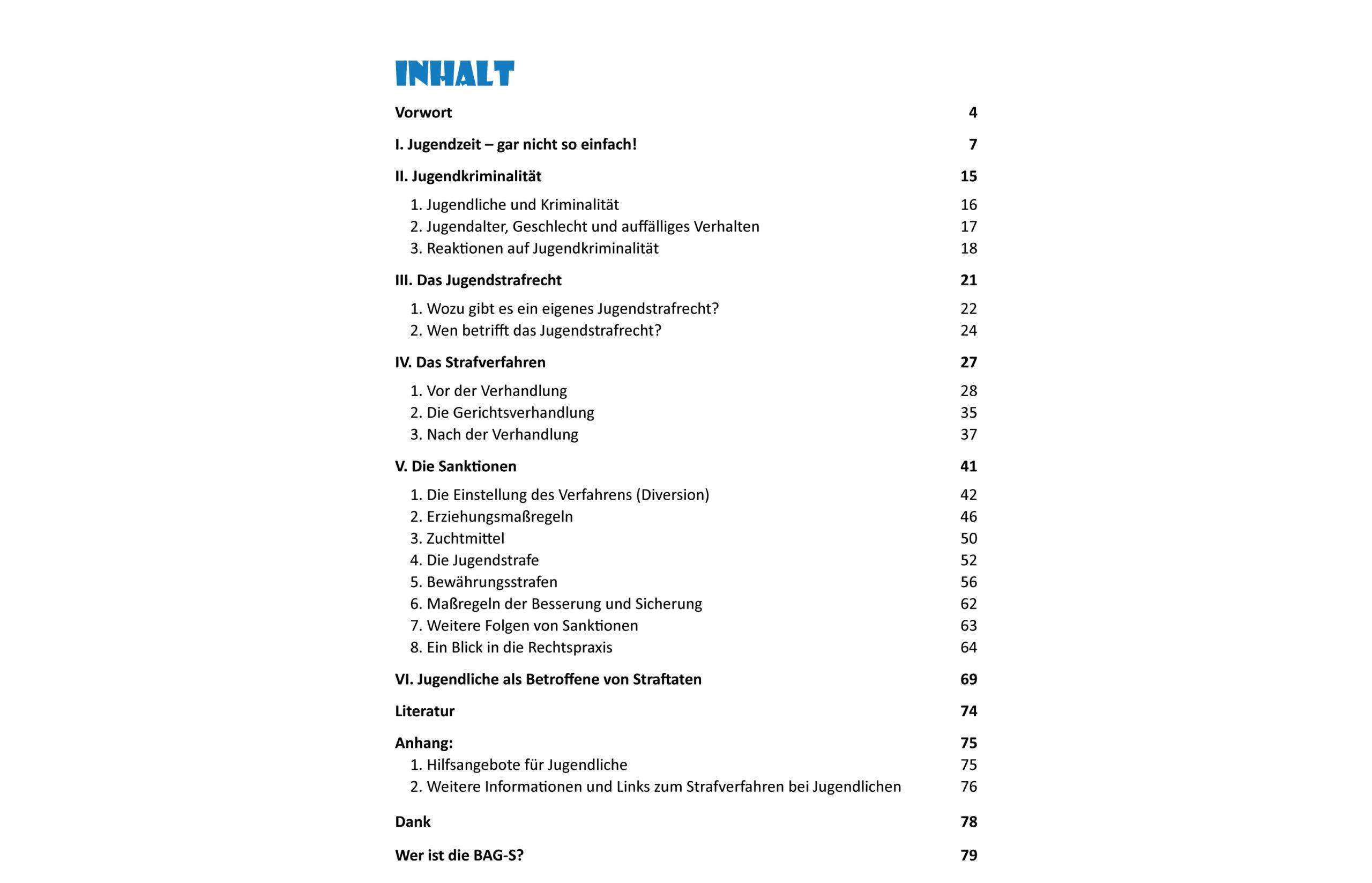 In verständlicher Art und Weise werden das Jugendstrafrecht, das Strafverfahren und die Sanktionen bei Jugendlichen dargestellt. Warum gibt es überhaupt ein eigenes Jugendstrafrecht? Welche Akteure sind beteiligt? Was ist der Unterschied zwischen „Erziehungsmaßregeln“ und „Zuchtmitteln“? Unsere praxisnahen Beispiele machen das Ganze lebendig und anschaulich! Zudem gibt es ein Kapitel über Jugendliche als Betroffene von Straftaten, sowie eine nützliche Übersicht über Hilfsangebote.