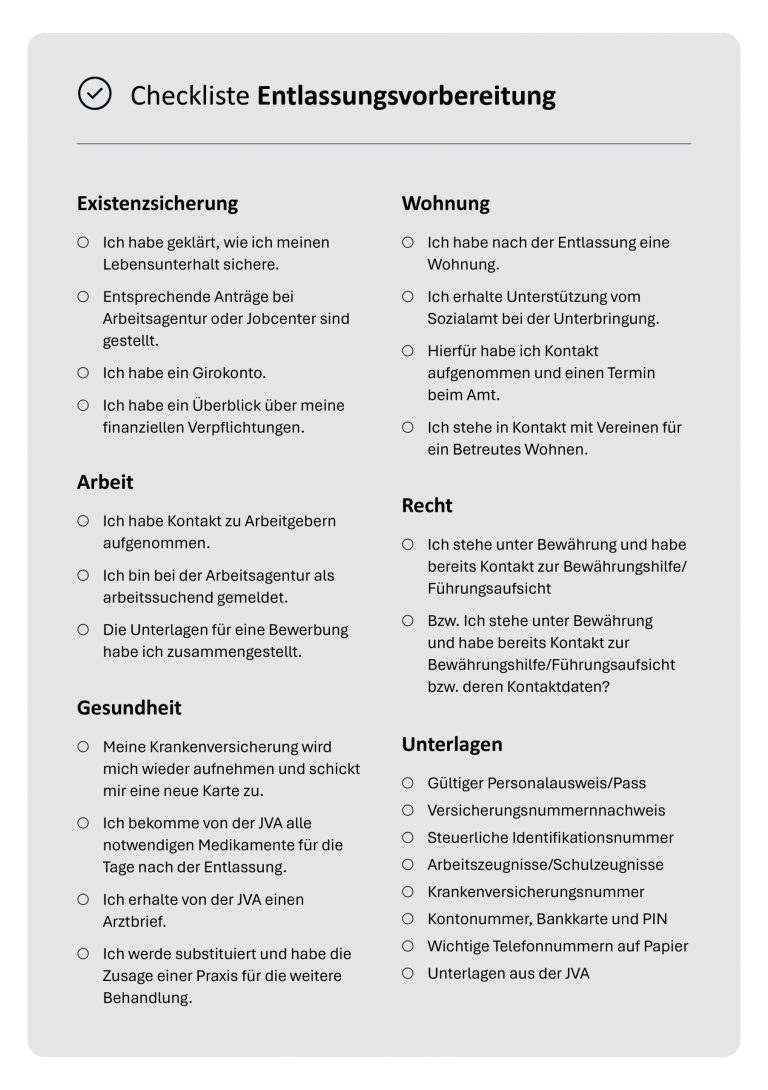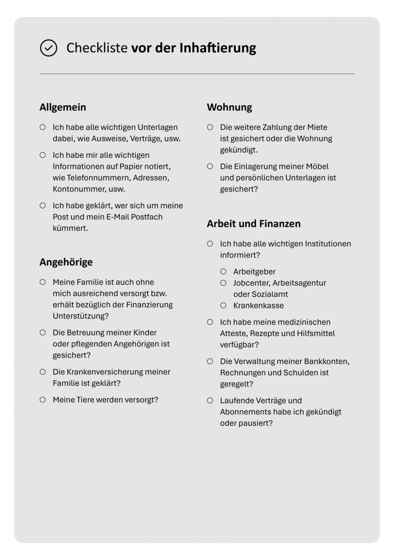 In diesem Ratgeber möchten wir Ihnen Antworten und Hilfestellungen zu den drängendsten Fragen geben, die während und nach der Haft auftreten können.